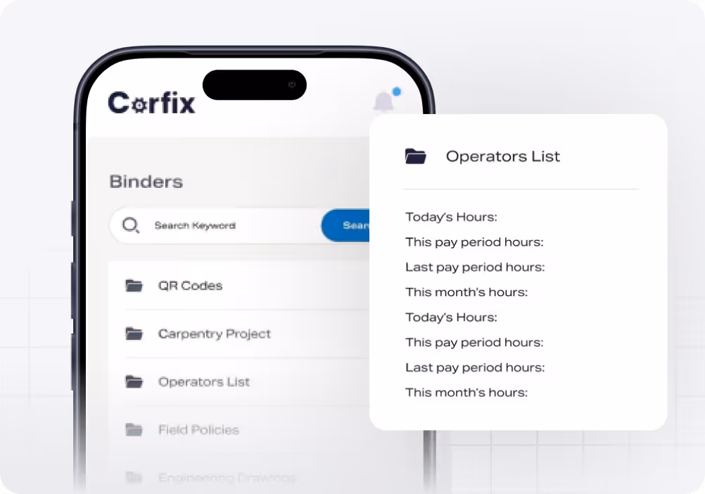 Paper has been the way construction crews have always done it, but there's a faster way now that saves a heap of time. The good news is nothing feels unfamiliar. Corfix works exactly the same way as a paper form, just on your phone. Your crew fills things out the same way they always have, except forms never get lost, certs never expire without warning, and payroll doesn't wait on timesheets still sitting in someone's truck.